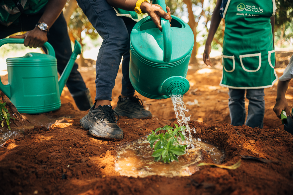 Programa educativo onde as crianças aprendem desde cedo as tarefas básicas do mundo agro, desde compostagem até a colheita dos productos da Fazenda.